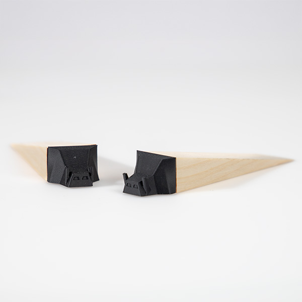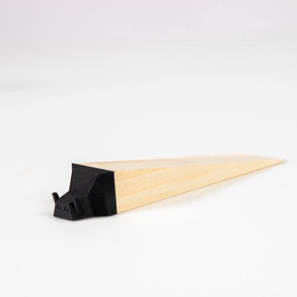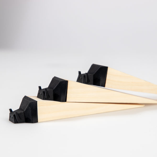Der Tür|keil|er klemmt sich als Verbund von 3D-Druck mit Holz unter jede Tür und hält sie in Position – und das saustark.